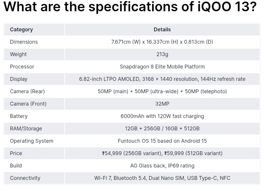 1. iQOO 13 5G (Legend, 16GB RAM, 512GB Storage