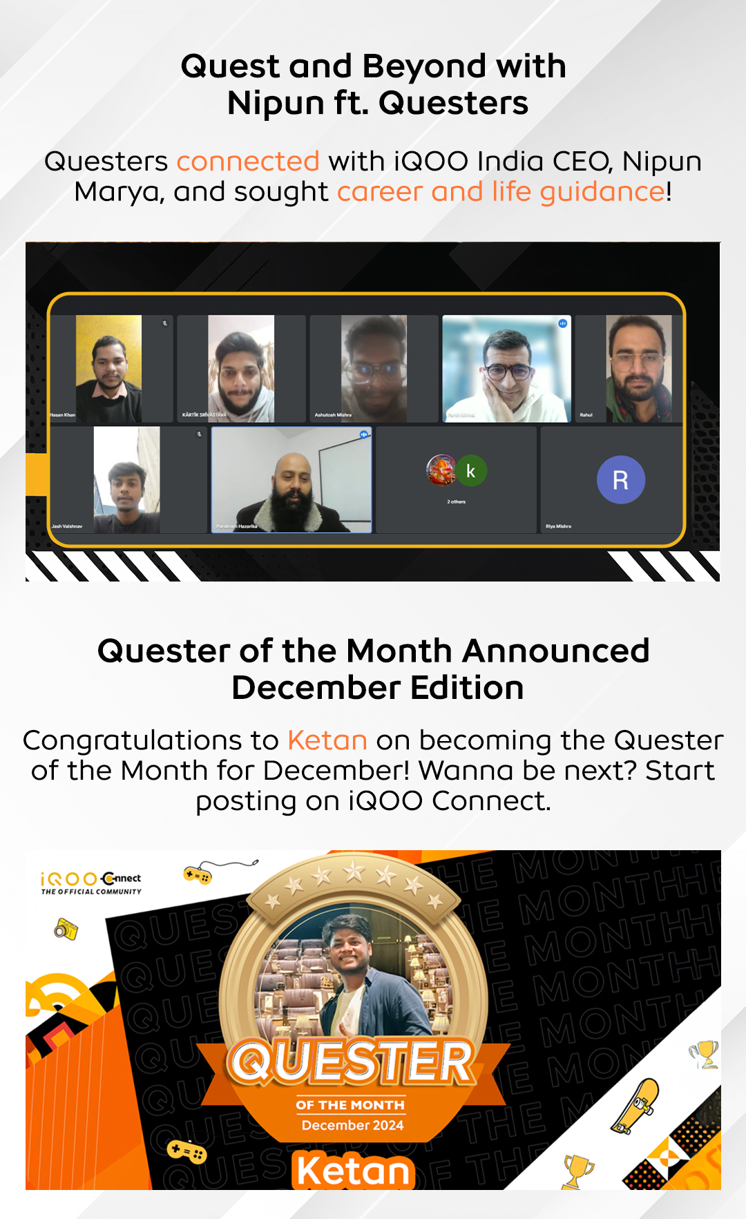 Ready to relive the highlights and gear up for the excitement ahead? Presenting the latest edition of our iQOO Connect Newsletter, where we wrap up the action-packed moments, spotlight our amazing Questers, and unveil what's next on the horizon! 🎉