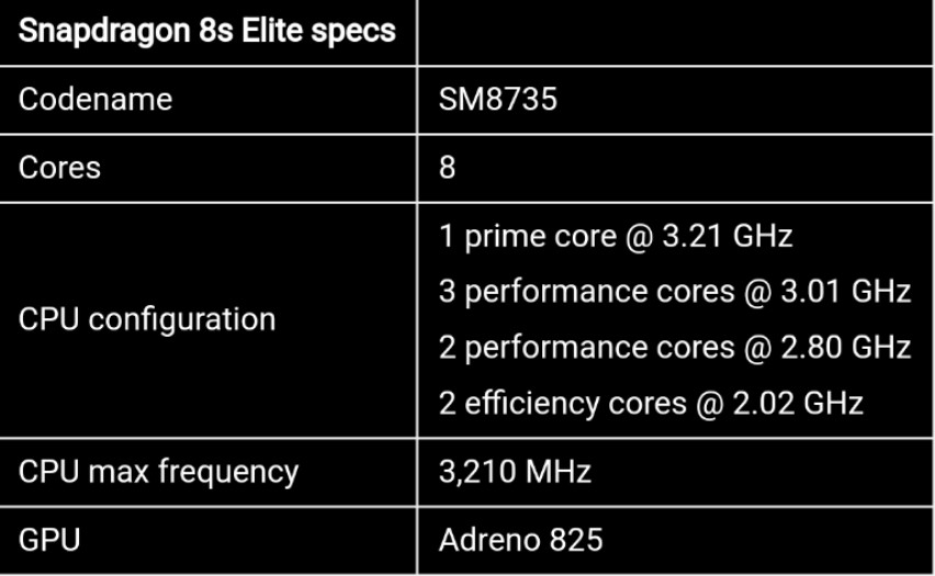 What’s more? The Snapdragon 8s Elite chip is codenamed ‘SM8735’ and is leaked to have a CPU architecture consisting of Cortex-X4 and Cortex-A720 cores. This means it won’t have Oryon cores that were developed in-house by Qualcomm but ARM-designed cores that were used in the Snapdragon 8 Gen 3 generation.