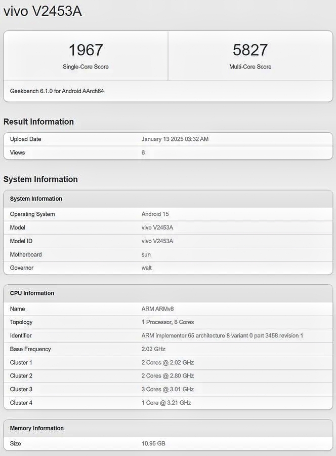 Recently, an unknown phone with the model number V2453A appeared on Geekbench. This is believed to be the iQOO Z10 Turbo Pro, which, as per Geekbench details, likely runs the Snapdragon 8s Elite.