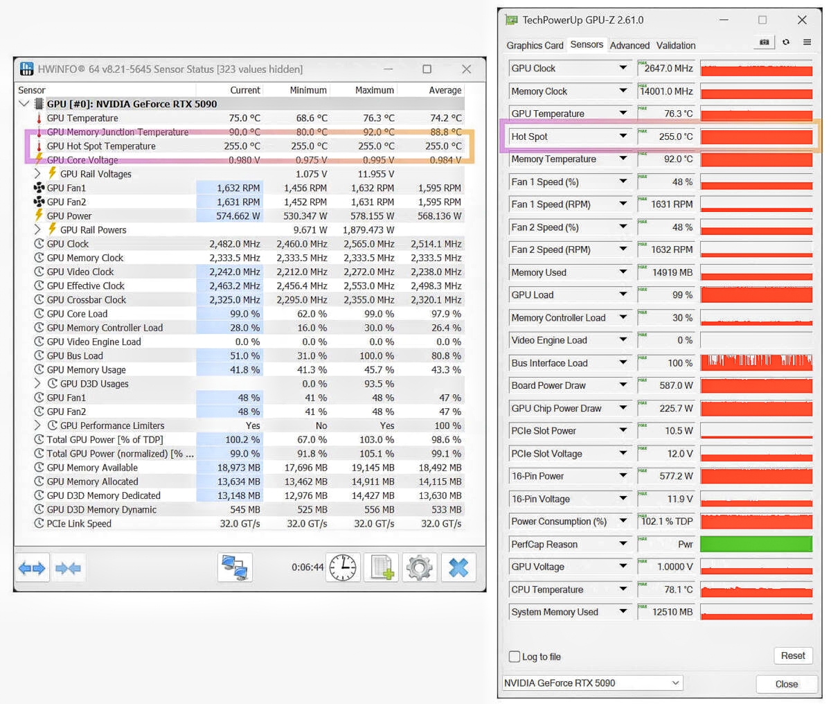 According to Wizzard, TechPowerUP's tech reviewer and the creator of the GPU-Z tool, NVIDIA has removed the Hot Spot sensor from RTX 5090 cards. Other reviewers have also noted that the current data produced by this sensor shows 255°C, which is obviously incorrect.