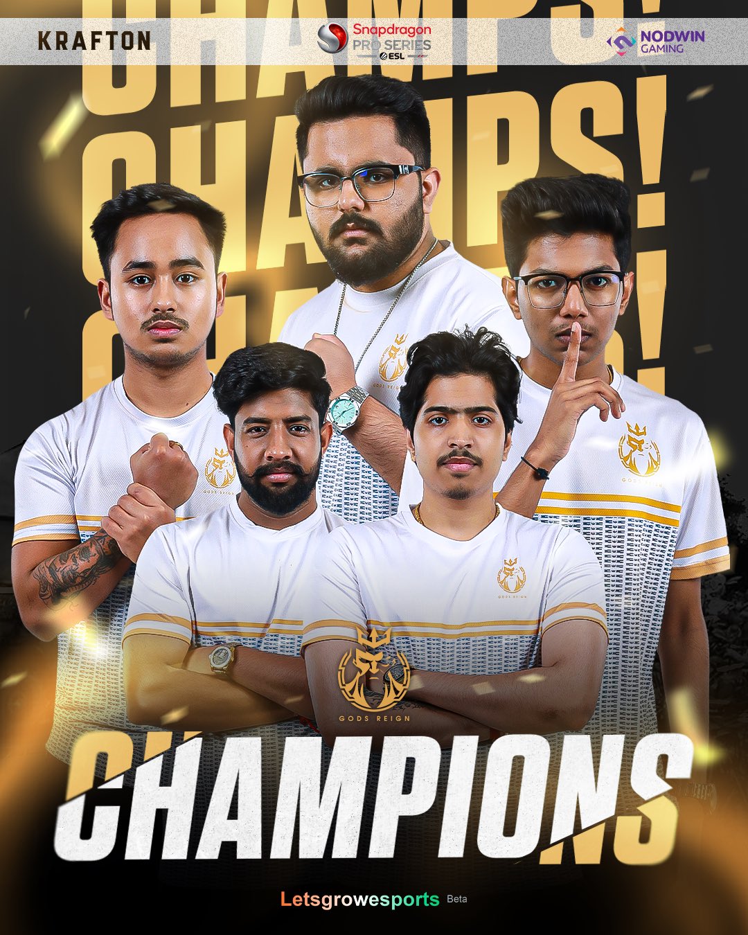 Gods Reign became the undisputed champions of the Snapdragon BGMI Pro Series Season 6. The Destro-led lineup showcased top-notch performances in the Finale and lifted the trophy, with the squad securing 155 points and four Chicken Dinners in 18 matches. The club was awarded the first prize of ₹50 lakh.