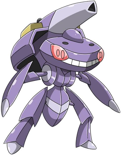 Genesect is a Bug/Steel-type Mythical Pokémon that was revived and modified by Team Plasma. Originally an ancient bug Pokémon, it was enhanced with a high-tech Cannon on its back that can fire different types of energy based on its Drive. Its signature move Techno Blast changes type depending on the item it holds, making it highly adaptable in battle.