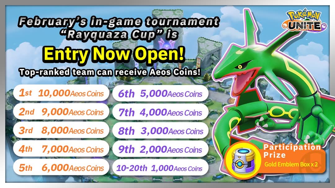 February's in-game tournament “Rayquaza Cup” is open for entries! 📢