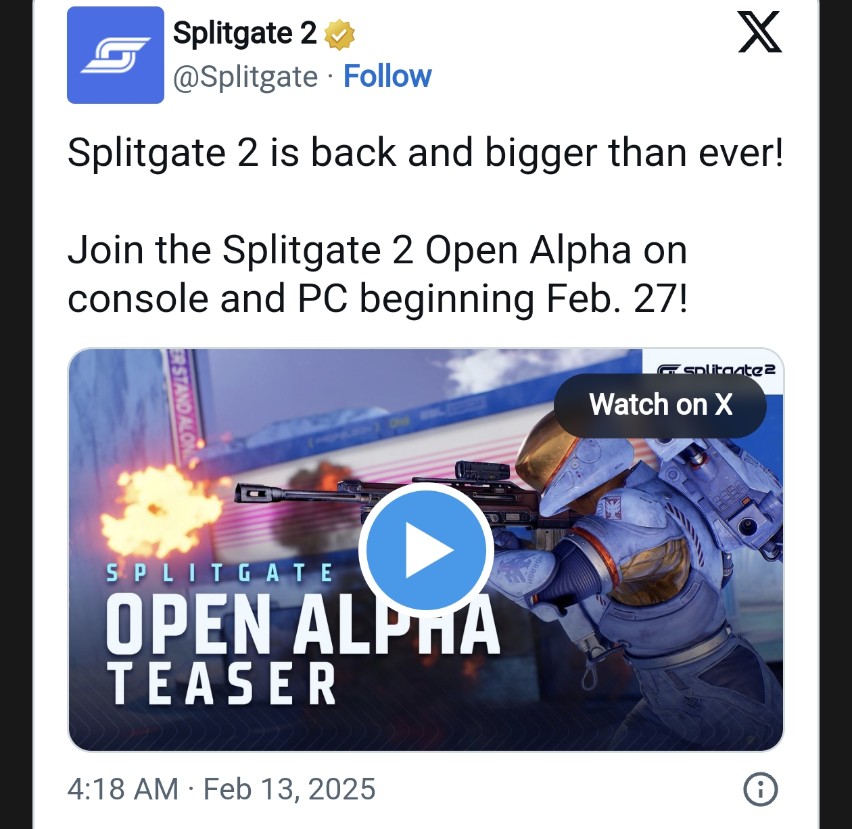 The open alpha will showcase a map 20 times larger than anything seen in the game's predecessor. Details about the upcoming title are gradually being revealed, including the return of the fun portal-jumping mechanic and the introduction of three Splitgate 2 factions: Aeros, Meridian, and Sabrask.