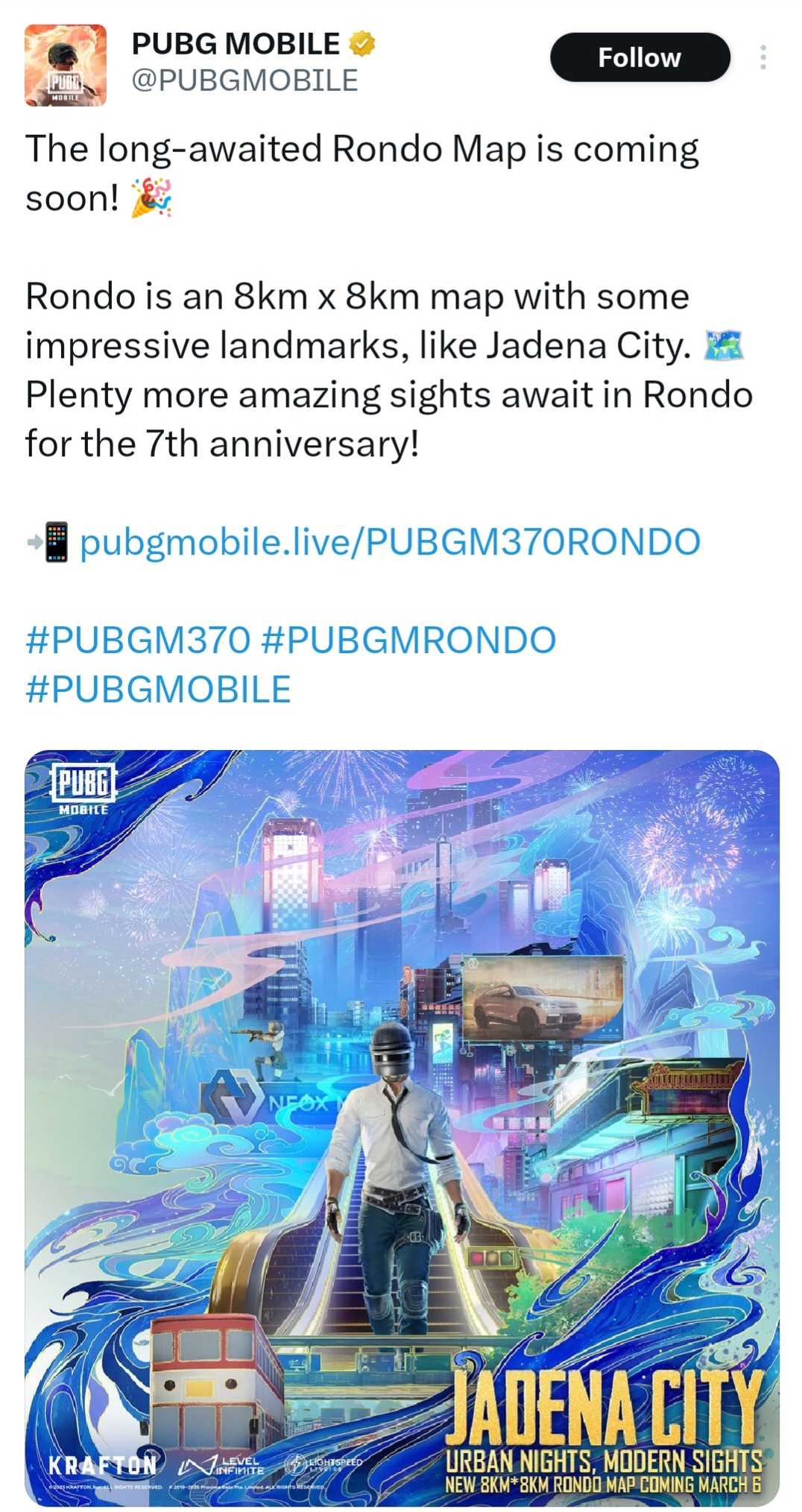 Rondo is the first 8km x 8km map update since the launch of PUBG MOBILE, where traditional eastern and modern aesthetics blend seamlessly together. The PUBG Mobile new map is a mix of natural and urban landscapes, players can stick to familiar strategies or draw inspiration from the environment to craft fresh tactics.