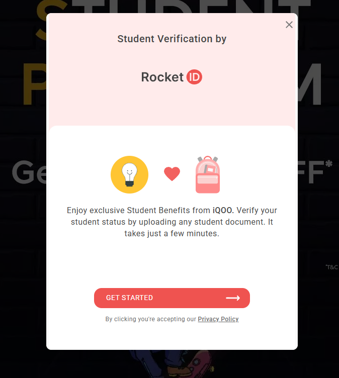 Register & Verify: Download the iQOO E-Store or "iQOO Store" app from the Play Store. Sign in or create an account using your student credentials. Verify your student status by uploading a valid school or college ID through the Rocket ID system.