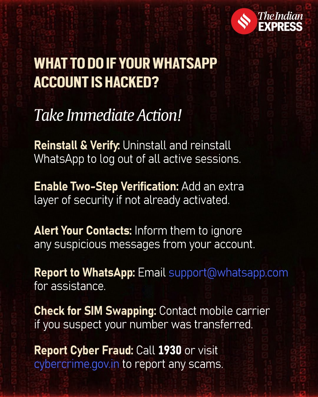 Call merging scam: A scammer calls you, claiming they got your number from a mutual friend. They then ask you to merge the call with another number, supposedly the ‘friend’. Once merged, you unknowingly connect with an automated WhatsApp OTP verification call. The scammer hears the OTP and gains access to your account.