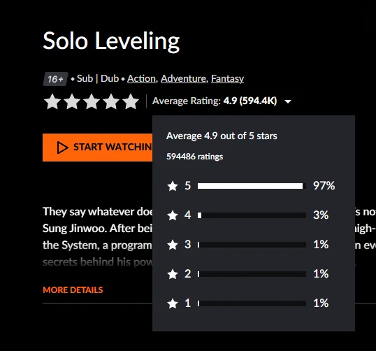 📢 Solo Leveling is now the most popular anime on Crunchyroll, surpassing: