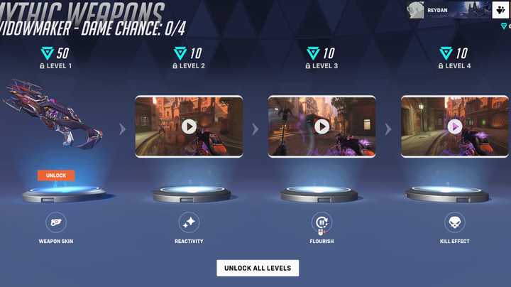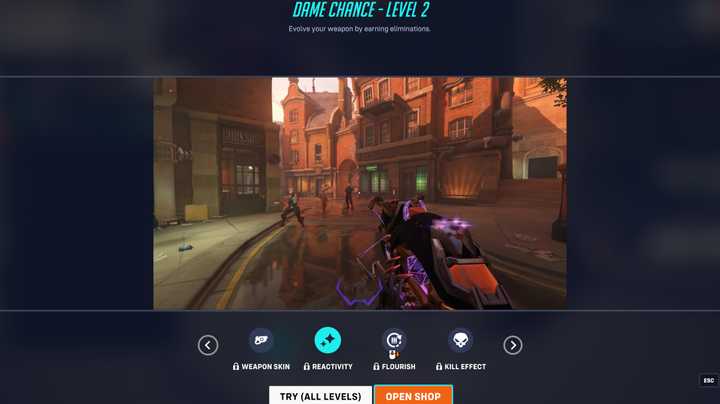 Like previous Mythic Weapon Skins in Overwatch 2, Dame Chance is obtained via the Mythic Shop. The weapon can be unlocked in its entirety for 80 Mythic Prisms – 50 for the base weapon, and 10 each for the three upgrade tiers to unlock the reactivity, weapon flourish, and kill effect, respectively. Players who don’t have the Mythic Prisms to spare can also purchase Dame Chance directly for $40 in a bundle that includes 20 Battle Pass tier skips.