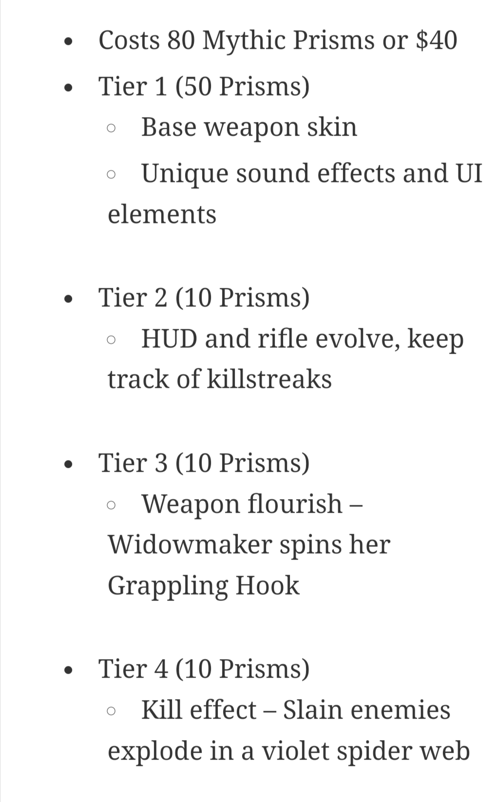 is officially available to buy in Overwatch 2. With four different tiers of unlockable effects, the fifth Mythic weapon skin in Overwatch 2 is one that fans of the deadly Talon assassin likely won’t want to miss.