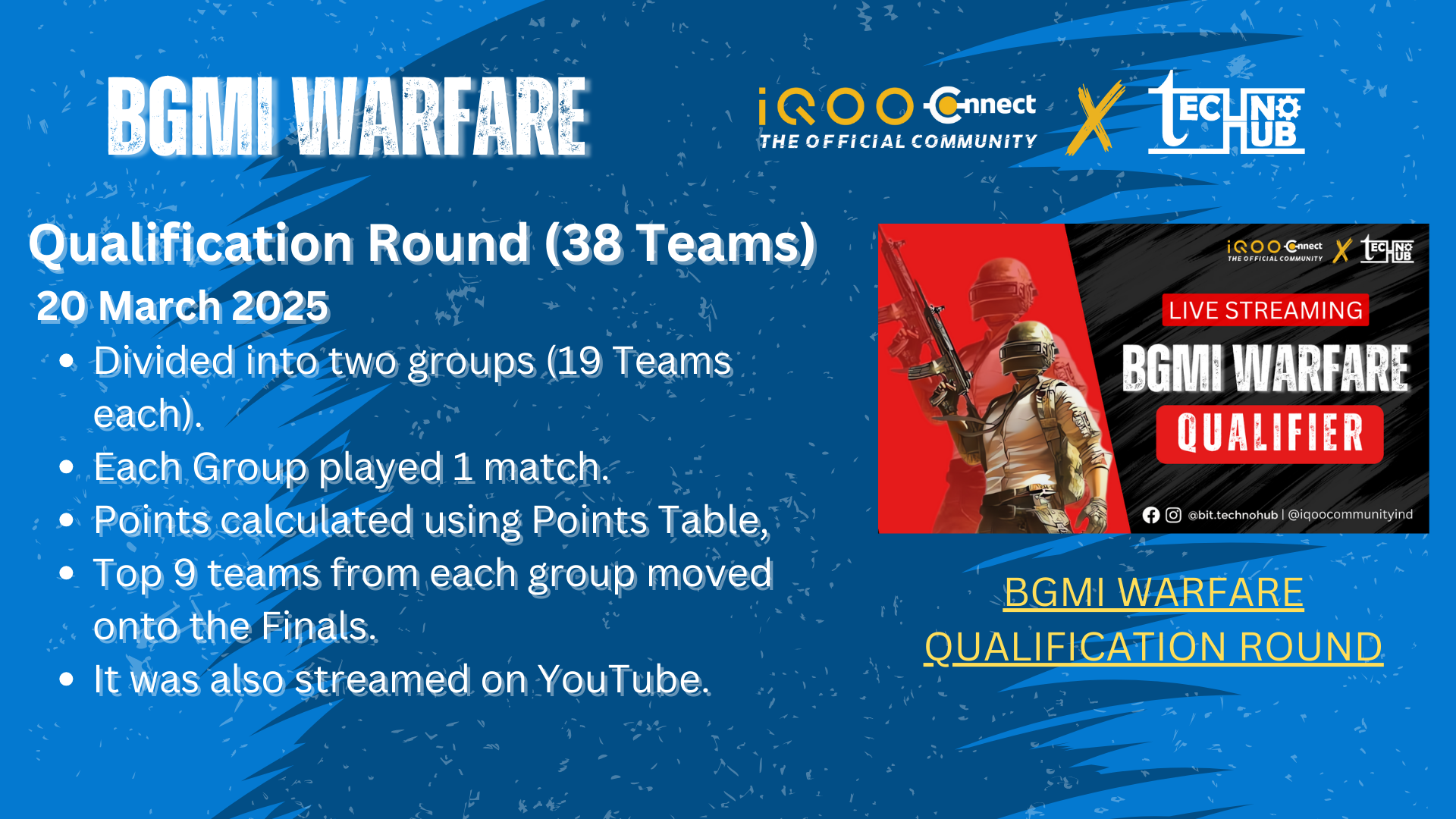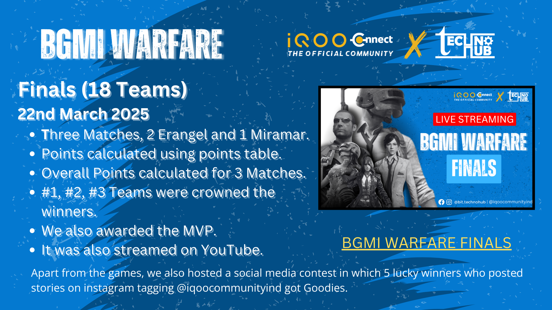 I recently collaborated with a club in my college BIT Durg to conduct a college level BGMI Tournament named 'BGMI Warfare'. Here is the recap of what we did in the tournament.
