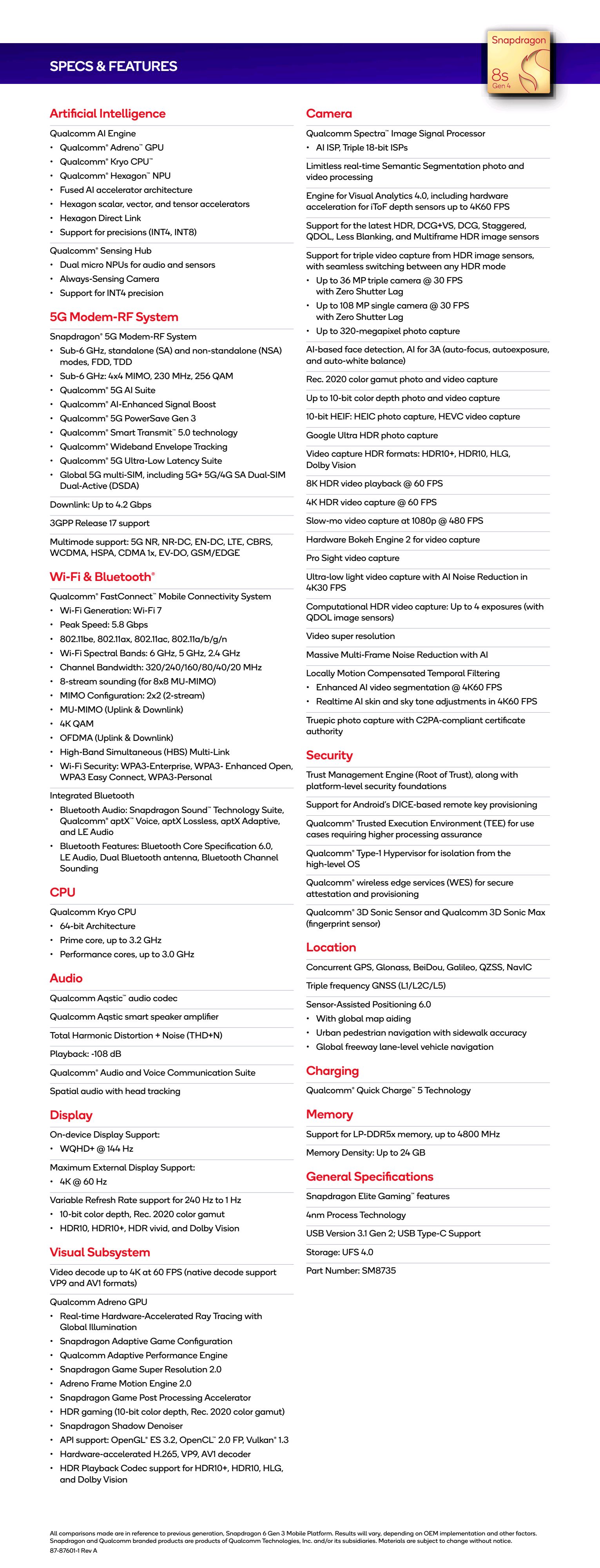 Includes Snapdragon Elite Gaming features such as real-time hardware-accelerated ray tracing and Adreno Frame Motion Engine 2.0