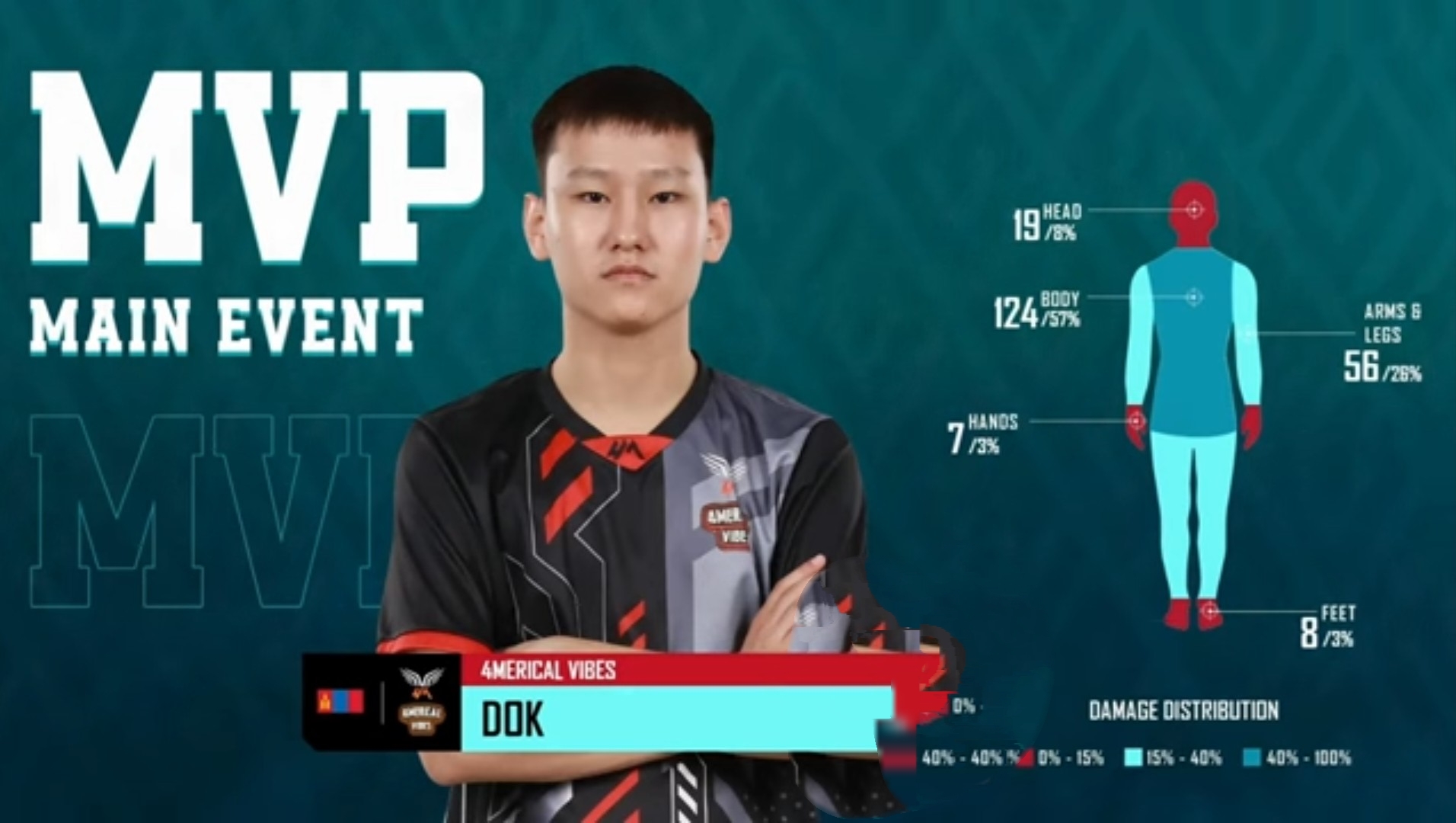 Despite being an experienced lineup, 4Merical Vibes had a terrible run in the PMGO Main Event, and the Mongolian club ranked 13th with 58 points. The team faced difficulties throughout their 12 matches played in the Main Event. However, their star player, DOK, was the MVP of the stage.