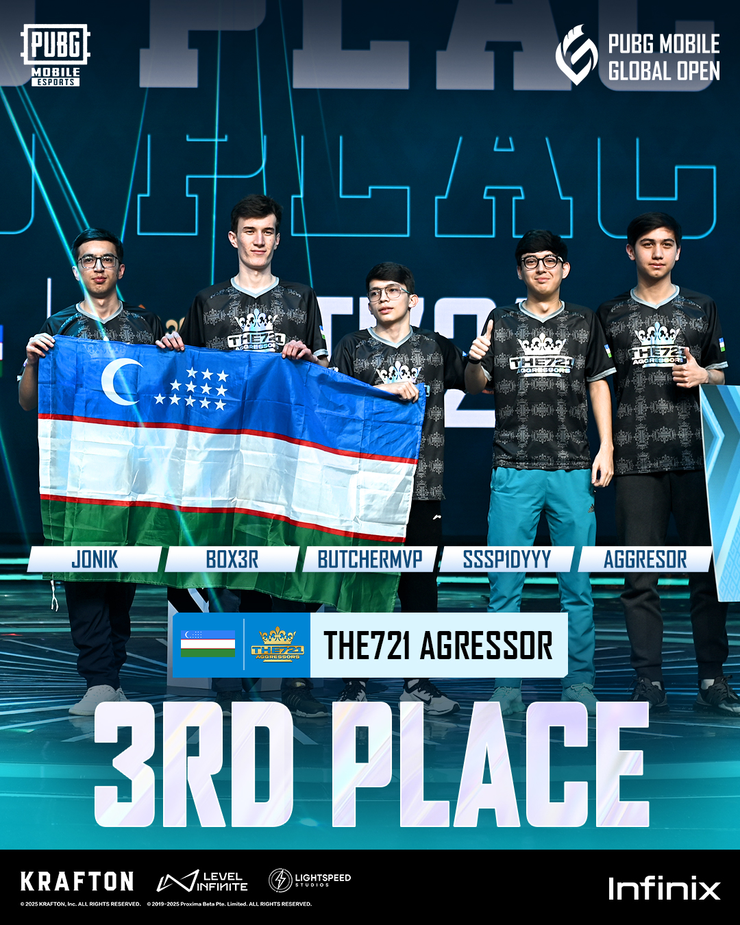 Regnum Carya Esports from Turkey emerged as champions of the PUBG Mobile Global Open (PMGO) 2025. The team, led by Sylas, performed outstandingly in the Main Event, held on April 12 and 13, 2025, in Uzbekistan. The squad scored 106 points and two Chicken Dinners in 12 matches. The club lifted the trophy and secured the first prize of $100,000.