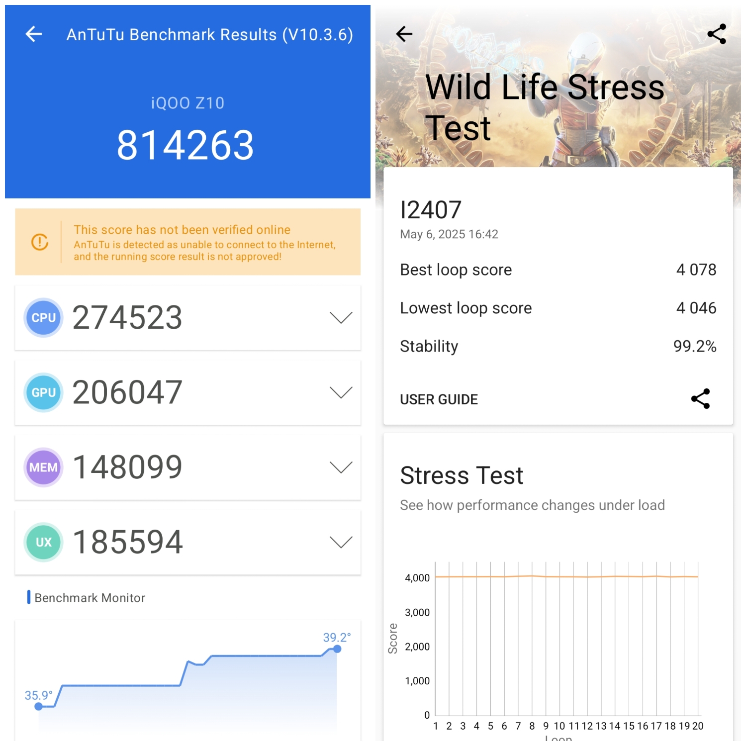 This enables ultra-smooth multitasking and delivers an enhanced gaming experience with lightning-fast performance. The device achieves an impressive AnTuTu score of around 8.1 plus. The wild life stress test with the stability of 99.2 percentage.