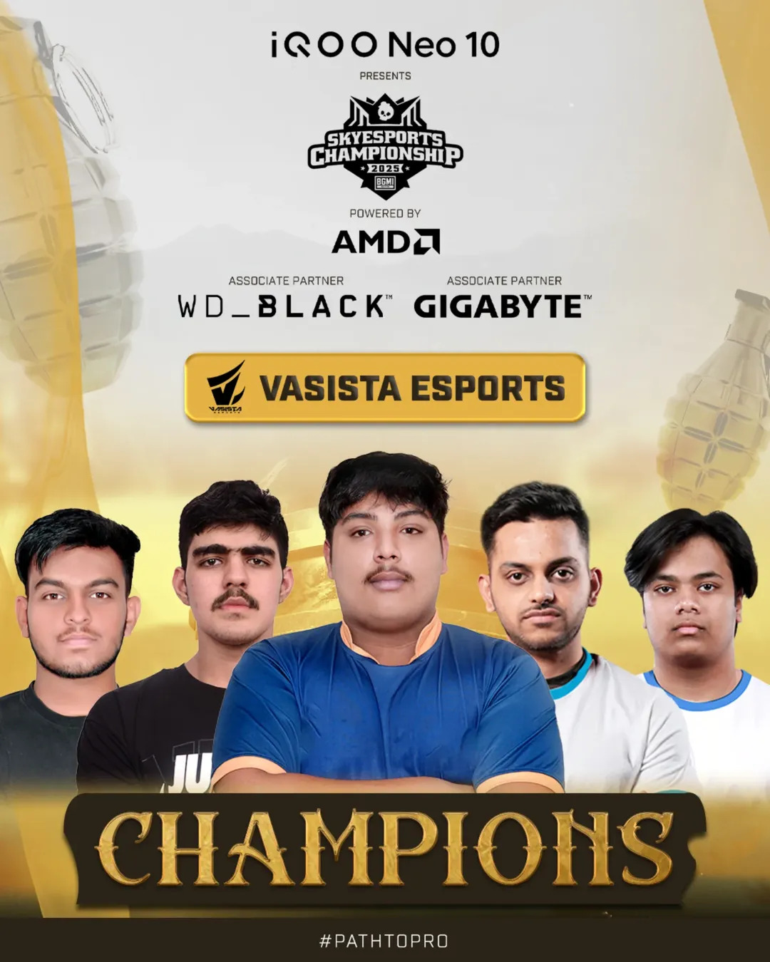 Vasista Esports won the Skyesports BGMI Championship 2025, as the Hector-led squad scored 169 points with the help of three Chicken Dinners and 94 kills in the Grand Finals. Their star players, Furry and Scaryyjod, performed exceptionally and were in the top two in the kill leaderboard. This newly formed lineup was impressive throughout the tournament.