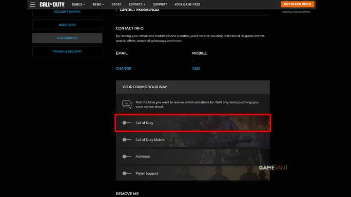 Once signed in, players should go to their Basic Info and add an email address if one hasn’t been added already. Then, scroll down to Preferences. Under "Your Comms. Your Way," players can opt in to receive emails related to anything from Call of Duty news to special offers.