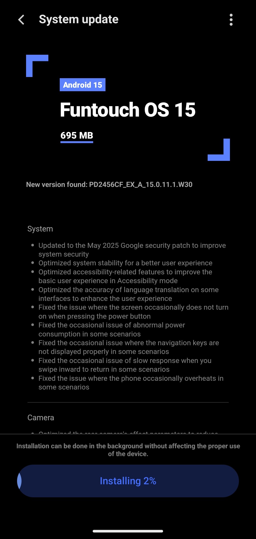 Update Size : 695 MB.