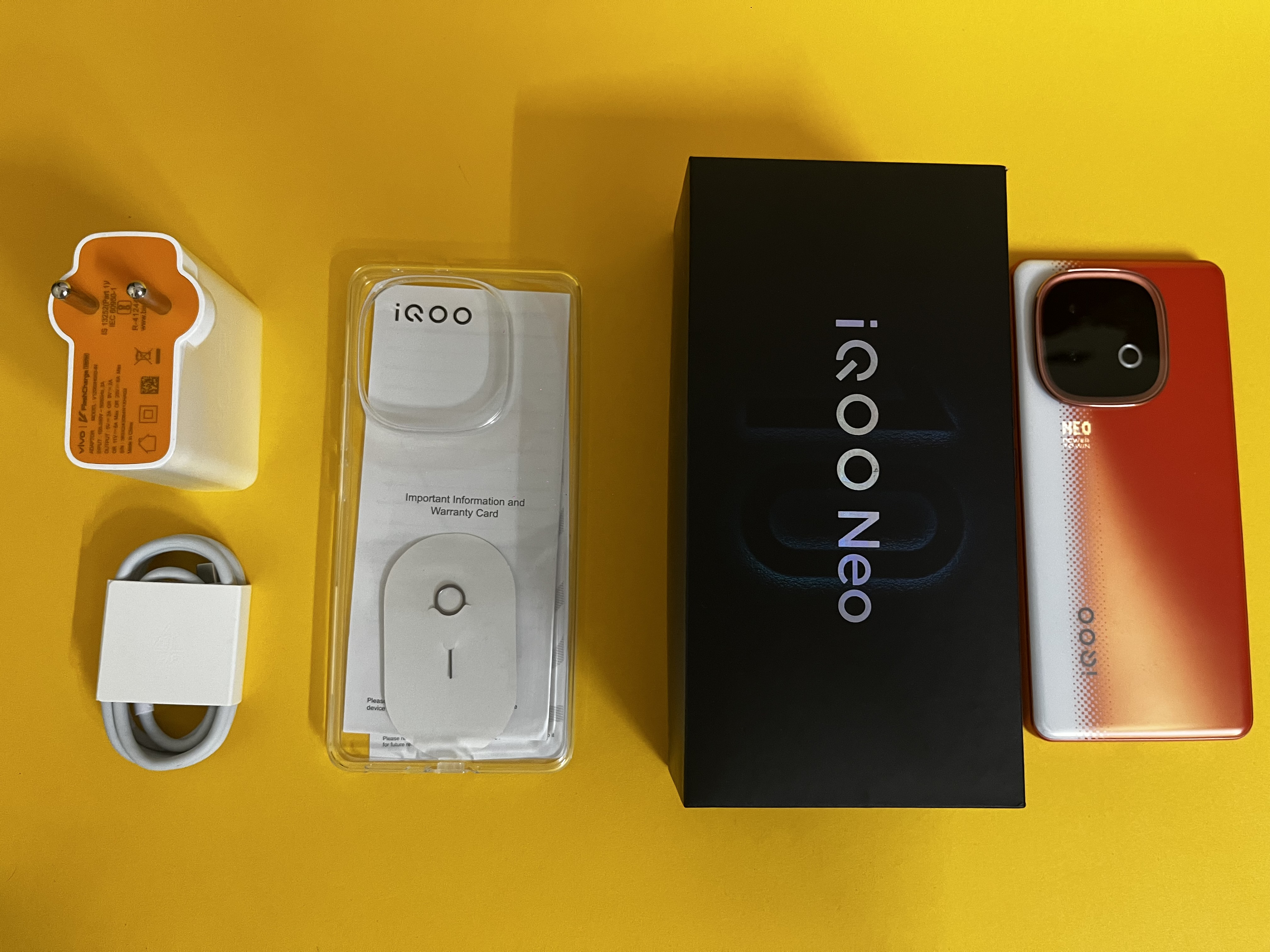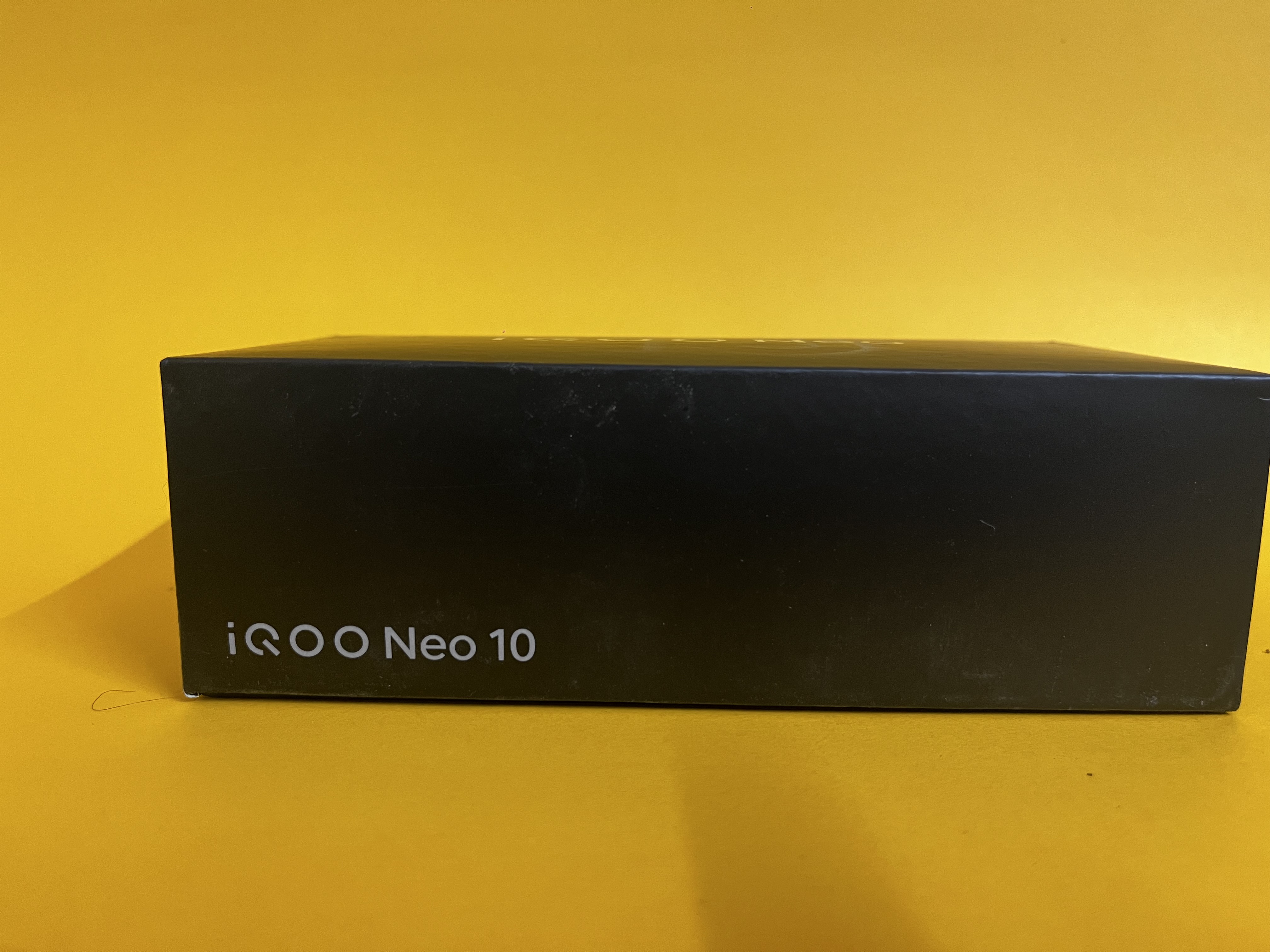 iQOO Neo 10 comes with 10 on the coloured box. displaying the Name “iQOO Neo 10” in bold letters that instantly catches your attention.Overall the box is very trendy and eye-catching