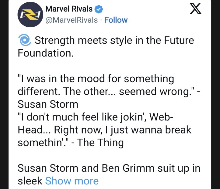 Marvel Rivals has given players their first look at gameplay of the upcoming Future Foundation skins for the Strategist Invisible Woman and the Vanguard The Thing, which are scheduled to release on June 12 at 7 PM PDT. Many fans have been enjoying their time with Marvel Rivals' Season 2.5 update, as it brought the iconic villain Ultron to the popular hero shooter as a flying Strategist.