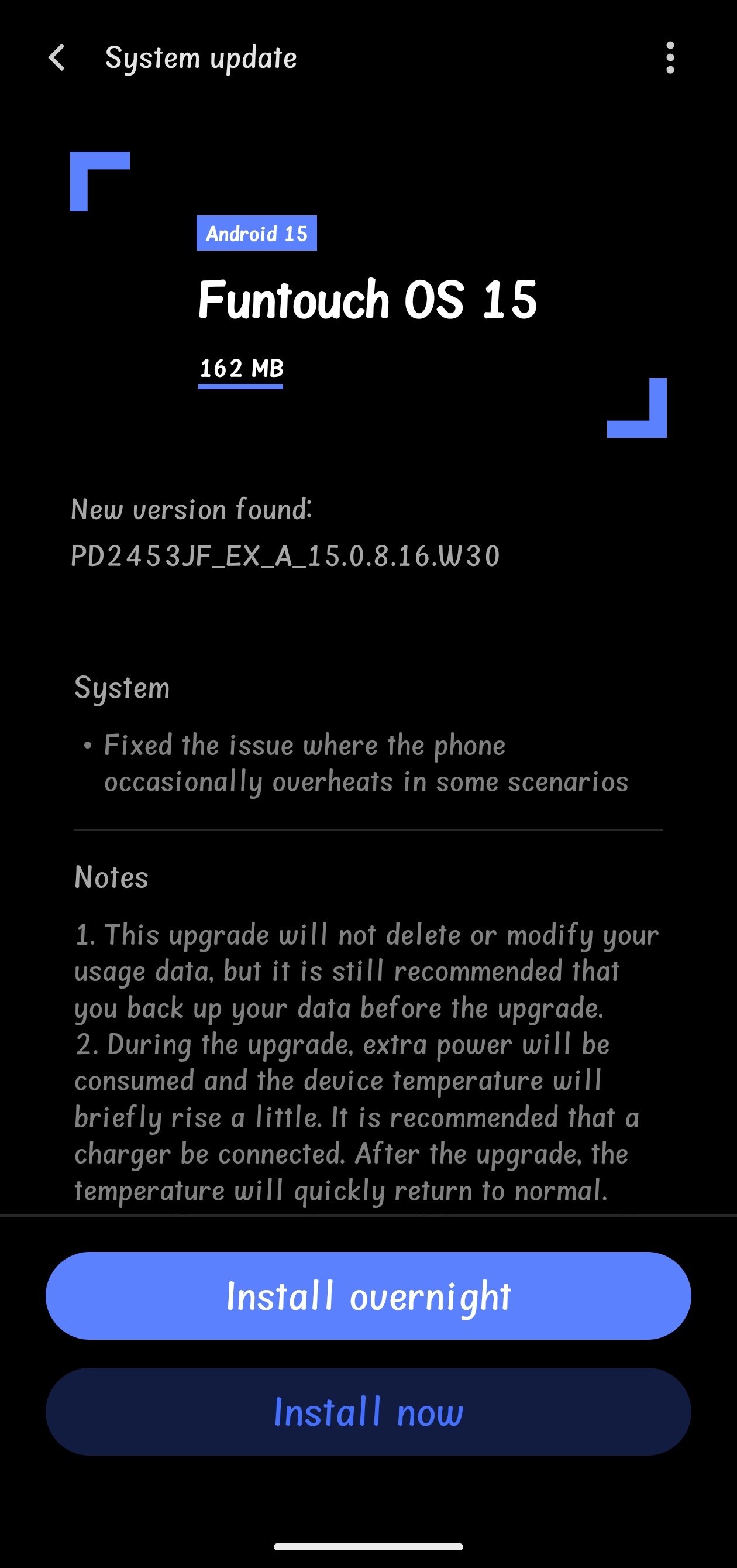 Update Size : 162 MB.