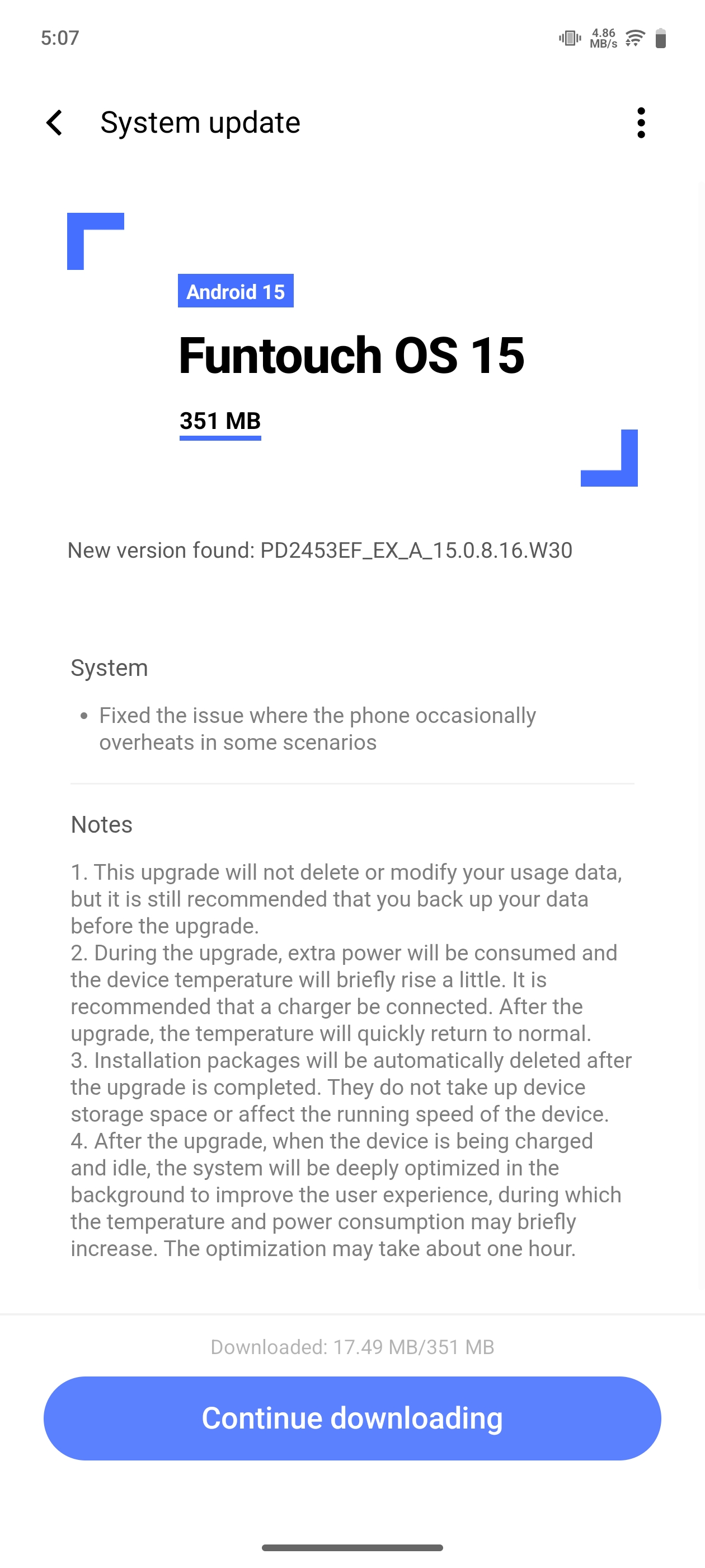 ✅ Fixed an issue where the phone occasionally overheats in some scenarios.