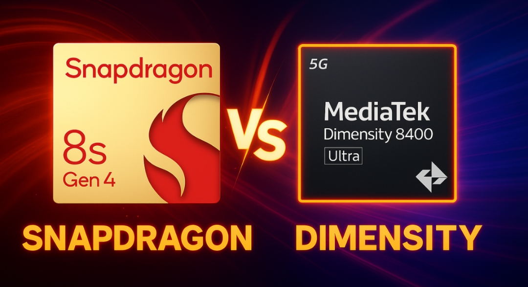Qualcomm's latest Snapdragon 8s Gen 4 (Apr 2025) goes head‑to‑head with MediaTek’s Dimensity 8400 Ultra (Dec 2024). Both are 4nm chips, but Snapdragon targets flagship-class performance while MediaTek aims high within the upper-midrange segment .