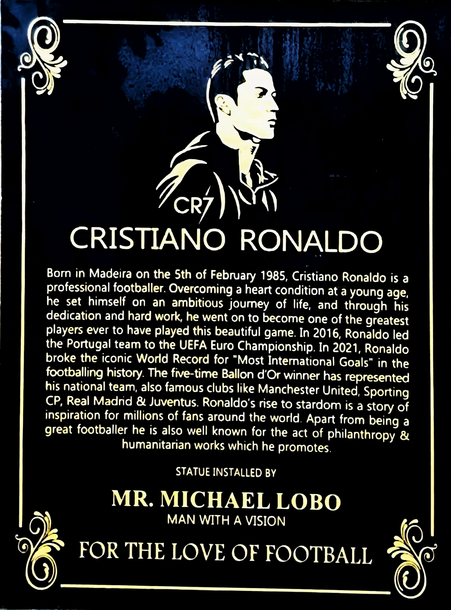This is the first Cristiano Ronaldo statue in India, weighing nearly 400 kg. A proud landmark for tourists and fans alike.