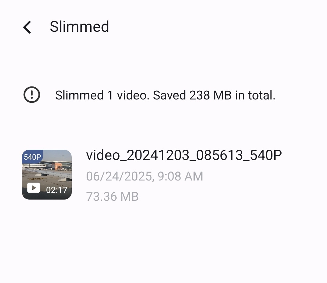 "Video Slimming" on an Android phone usually refers to reducing the file size of a video — basically compressing it so that it takes up less storage space or is easier to share.