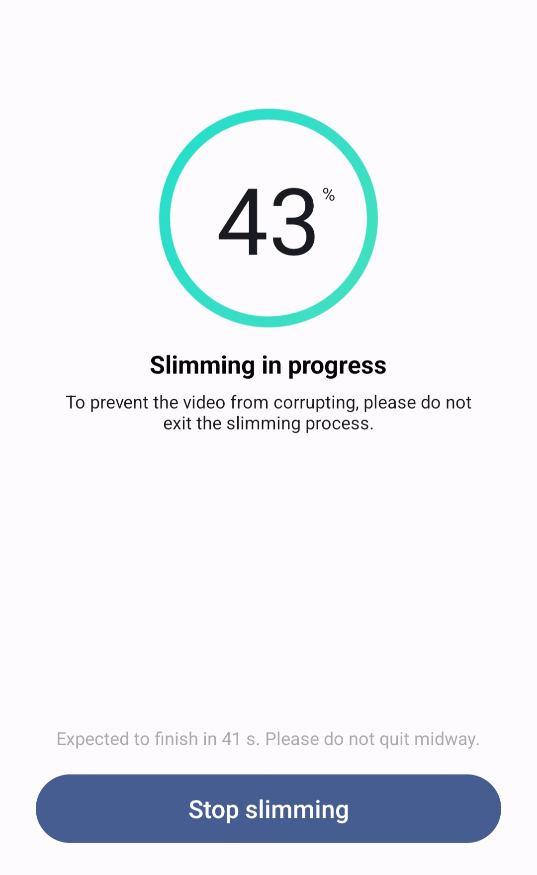 7. You'll see Slimming in progress. It is recommended not to stop or exit while slimming.
