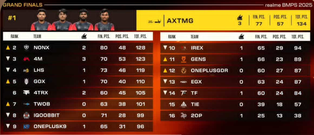 The atmosphere at the Yashobhoomi Convention Centre was electric as Day 3 unfolded, delivering the ultimate showdown. Every calculated move, every daring push, and every clutch victory contributed to a truly unforgettable series of matches. The intensity was palpable as the top 16 teams vied for supremacy and the massive ₹4 crore prize pool.As the final points were tallied and the last Chicken Dinner was claimed, Team Aryan x TMG Gaming tood tall as the undisputed champions of the realme BMPS 2025! Their exceptional consistency, strategic brilliance, and unwavering teamwork throughout the tournament set them apart. This victory marks a monumental achievement for the team and for Indian BGMI esports as a whole.